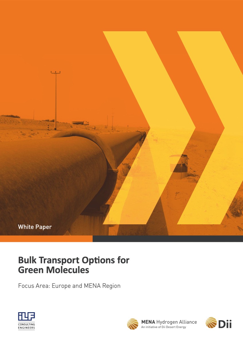 Im Mittelpunkt der Studie „Bulk Transport Options for Green Molecules” stehen die Verbindungen zwischen Europa und der der MENA-Region (Middle East North Africa). Hier wurden alle aktuell verfügbaren Transportmethoden und -wege unter die Lupe genommen. Neben dem Transport von Wasserstoff sind das die Umwandlung in Ammoniak und die Bindung an Kohlenwasserstoffe als Transportmedium (LOHC).